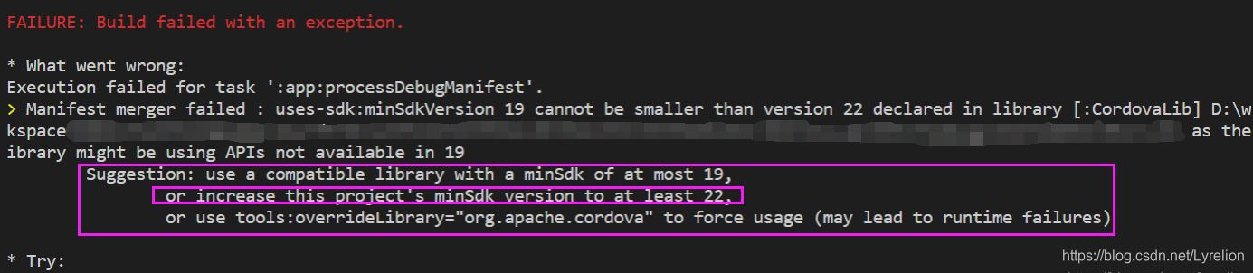 【Angular】use a compatible library with a minSdk of at most 19...