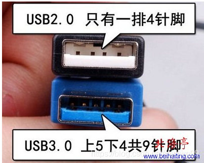 引脚上区别:从引脚上可以看出USB3.0为什么向下兼容。因为USB3.0引脚包含D+,D-