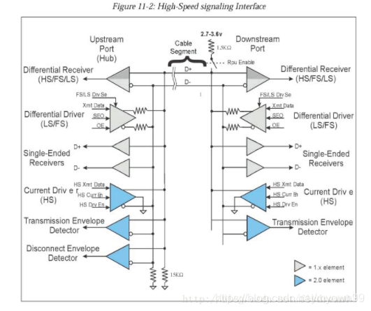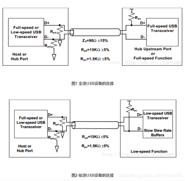 1.由于上拉电阻的不同,USB通信高低速不一样。由下图发现: