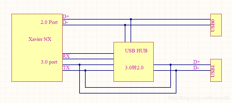 这是我设计框图,保留直连方式和usb hub两种方式,usb3.0就必须通过usb hub转成2.0 ,像我这样把usb3.0 TX的差分信号接到usb1接口是不对的。参考上面usb3.0接口定义可以发现这是严重错误。