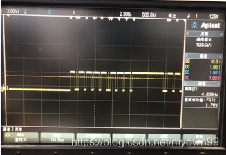 鼠标插在我设计底板电压就变低了。在查原理图发现可能usb hub在影响,去除usb hub芯片,测得电压有2.5V。再次插入鼠标还是不识别,再测试波形: